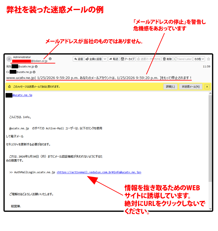 弊社を装った悪質なメールにご注意ください(2026/01/28 更新)