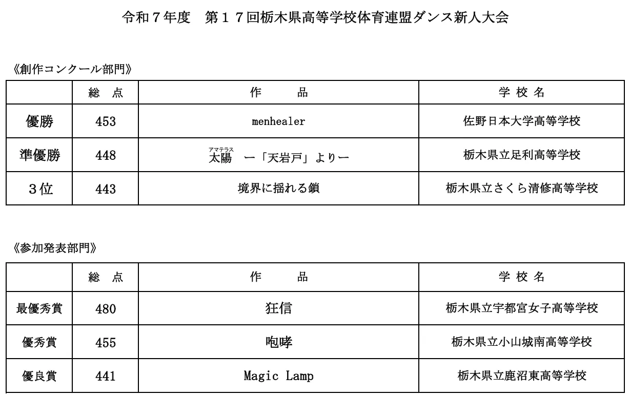 「第17回栃木県高等学校体育連盟ダンス新人大会」放送のお知らせ